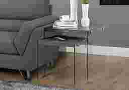 Featuring a chic glossy grey surface, this 2 piece Housely nesting table set adds exceptional style to any room. The unique tempered glass base provides sturdy support as well as a contemporary look. Use this multi-functional set as end tables, lamp stands, decorative display units, or simply as accent pieces in your living room, family room, den, or office space. Customer assembly required.