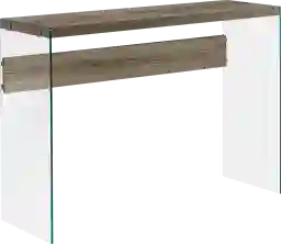 Enhance the look of your home with this on trend contemporary style Housely console table. The rectangular top is finished in a sophisticated dark taupe, supported with sturdy and stylish tempered glass sides. This multi-functional console table has ample surface space to showcase decorative display items, a lamp, or simply as a chic accent piece in your living room, hallway or office space. Customer assembly required.