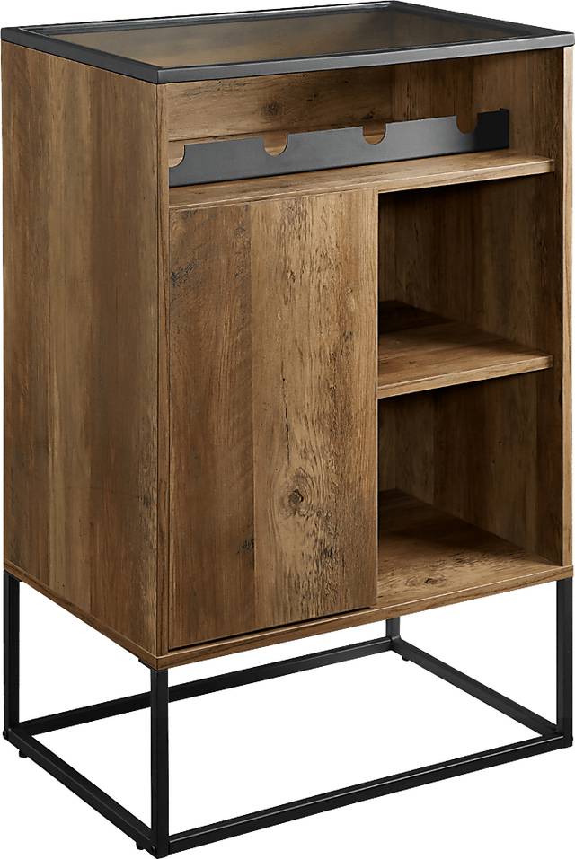 Blow your guests out of the water with this modern Hovenweep bar cabinet. Whether it's your boss, neighbors, or parents, anyone will be impressed when you offer a choice of five wines from the bottle holder before the meal begins. You won't have to stress about plating appetizers when you place your finest dishes on the two adjustable shelves, one behind a smooth door with soft close metal hinges. And with the sophisticated look of the open, metal base, any gathering will be elevated and guests will enjoy your mature, cool vibe. Customer assembly is required.