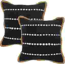 Decorate your space with this beautiful set of 2 coastal throw pillows. Handmade from a textured cotton blend fabric, it boasts a jute frame for both quality and style. With a classic striped pattern, it blends effortlessly into your existing decor, while adding a fresh look. Perfectly placed on your sofa, chair, or bed, it is sure to add elevated design and dimension. Poly inserts included.