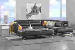 Uptown flair brings sophisticated style and conversation home with the luxurious Hudson Heights collection. From the handsome tuxedo arms to the shiny chrome legs, the sectional has a top to bottom contemporary appearance with a right arm facing chaise alongside a left arm facing sofa. The seats feature adjustable ratchet-style headrests and supportive lumbar cushions that make relaxing an easy invitation. Built in storage compartments are the perfect place to keep remotes, electronic cords and more of your favorite things organized and close at hand. The black color of the soft, sleek fabric is complimented by gorgeous, tufted details on the sectional. A coordinating cocktail ottoman completes the look. Upholstery: 85% Polyester, 15% Polyurethane Cleaning Instructions: Use water based cleaning agents or foam. Table and lamp not as shown in room image. Accent pillows not included.