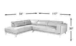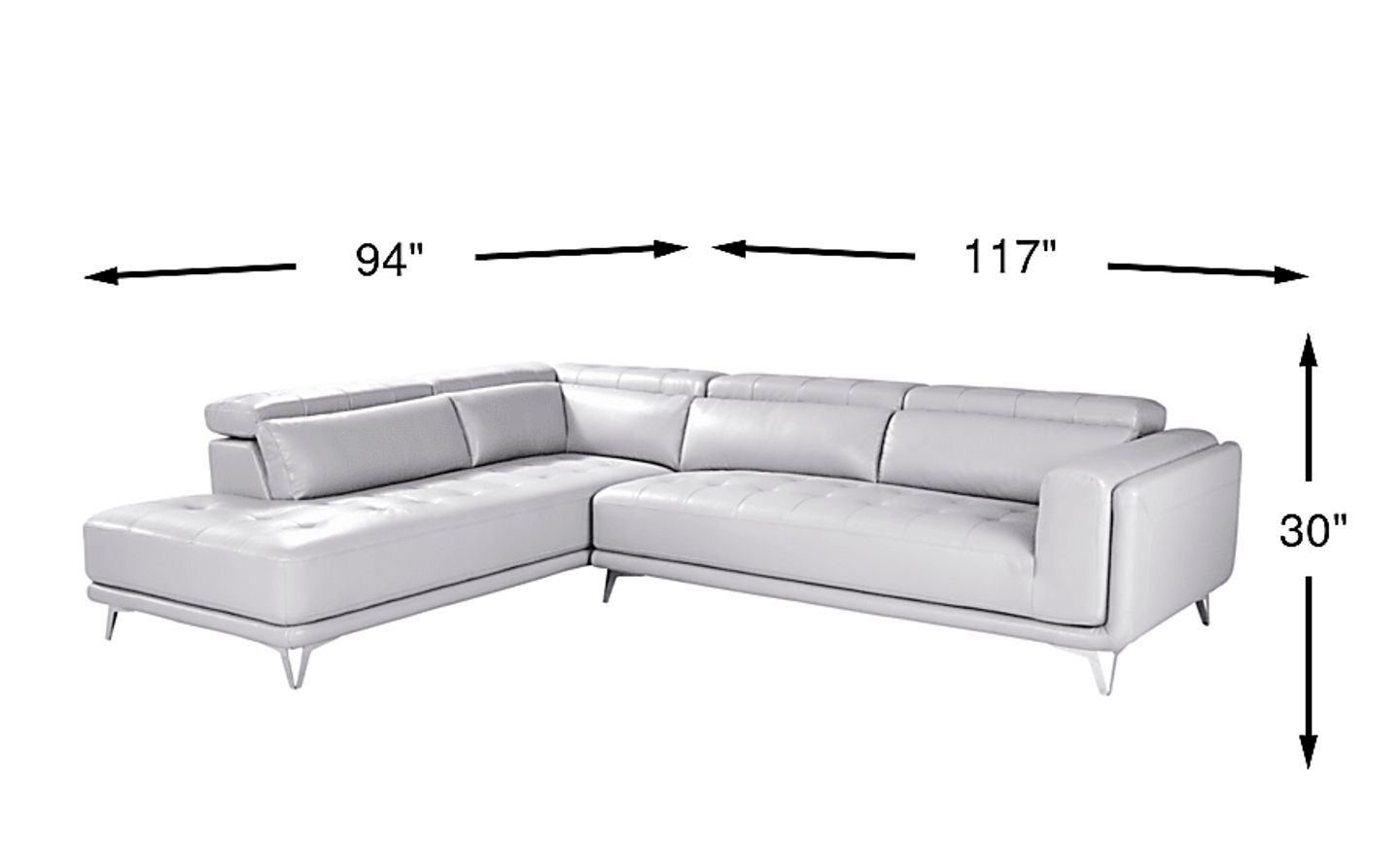Uptown flair brings sophisticated style and conversation home with the luxurious Hudson Heights sectional. From the handsome tuxedo arms to the shiny chrome legs, this piece has a top to bottom contemporary appearance with a left arm facing chaise alongside a right arm facing sofa. The seats feature adjustable ratchet-style headrests and supportive lumbar cushions that make relaxing an easy invitation. Built in storage compartments are the perfect place to keep remotes, electronic cords and more of your favorite things organized and close at hand. The platinum color of the soft, sleek fabric is complimented by the sectional's gorgeous, tufted details. Upholstery: 85% Polyester, 15% Polyurethane.
