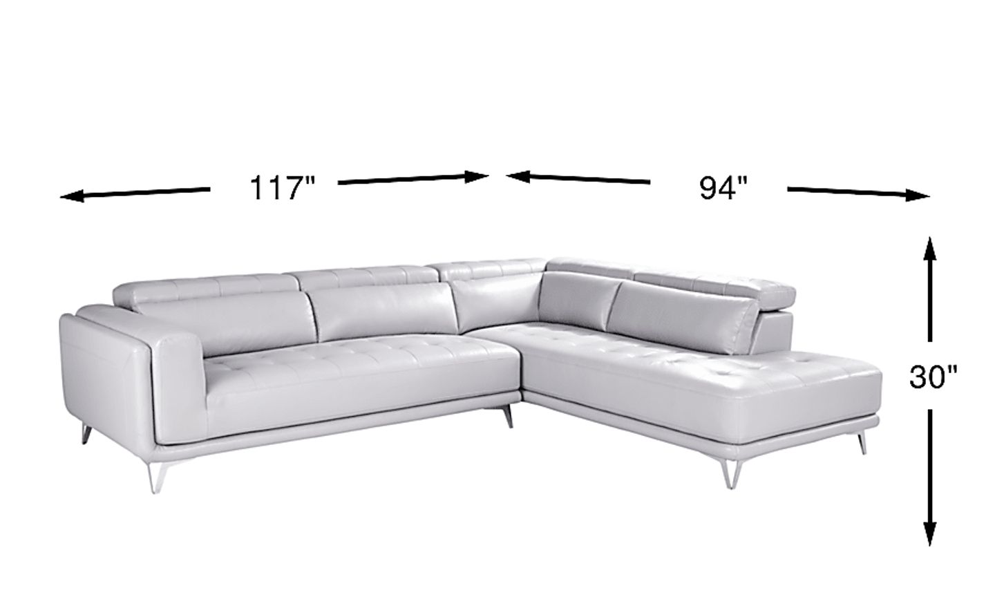 Yes, this sectional is specifically designed with a "condo" theme in mind, making it ideal for urban living. With a width of 117 inches, it provides ample seating without the excessive bulk of traditional furniture. The "uptown flair" provided by its low-profile 30-inch height and shiny chrome legs helps maintain an airy, open feel in smaller spaces, preventing the room from feeling cramped while still offering luxurious comfort.