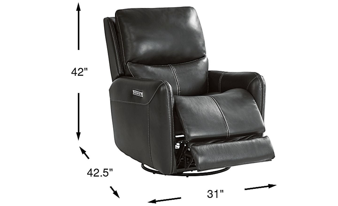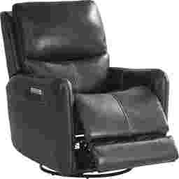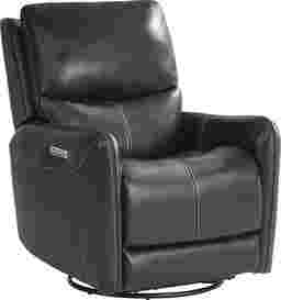 Head-turning design and total convenience come home with the Hudson Place recliner. The padded, double-stitched outline of this piece augments the precision design and dynamic curves. Sumptuous black top-grain leather where the body touches creates comfort that's just as welcome in a private theater as it is in the living room. With exceptional triple-power recline function, the headrest, lumbar support, and the recline angle can all be adjusted independently. 360-degree swivel offers the ability to position the chair to your liking. An included USB port also offers convenient charging for handheld devices. Upholstery: Top grain leather where the body touches and polyurethane fabric sides and backs.