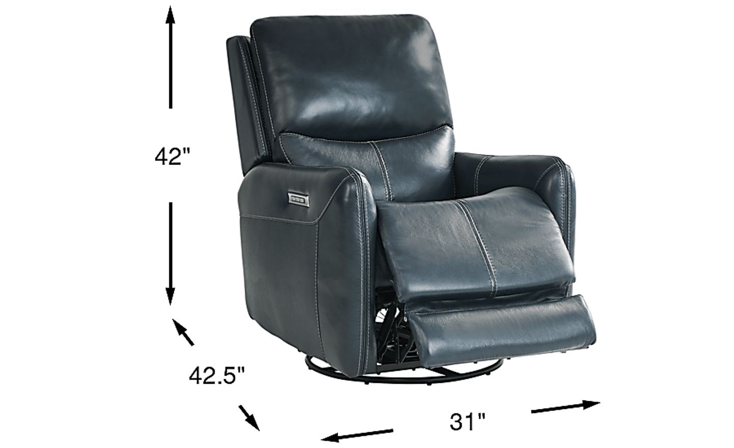 Head-turning design and total convenience come home with the Hudson Place recliner. The padded, double-stitched outline of this piece augments the precision design and dynamic curves. Sumptuous ocean top-grain leather where the body touches creates comfort that's just as welcome in a private theater as it is in the living room. With exceptional triple-power recline function, the headrest, lumbar support, and the recline angle can all be adjusted independently. 360-degree swivel offers the ability to position the chair to your liking. An included USB port also offers convenient charging for handheld devices. Upholstery: Top grain leather where the body touches and polyurethane fabric sides and backs.