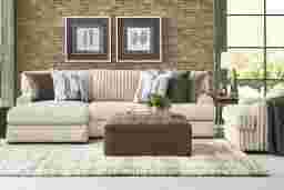 Modern uptown luxury meets traditional downhome comfort with the Hudson Street sectional from Cindy Crawford Home. Highlighted by soft knit upholstery, this transitional piece features wide, low-profile track arms that run from the left arm facing chaise to the right arm facing loveseat. Vertical channeling on the lush back cushions supplies the look with an eye-popping detail while feather blend seat cushions and coordinating accent pillows provide even more plush, padded relaxation. The beige color of the sectional's downy fabric lends the grand silhouette an irresistible final touch. Upholstery:100% Polyester.
