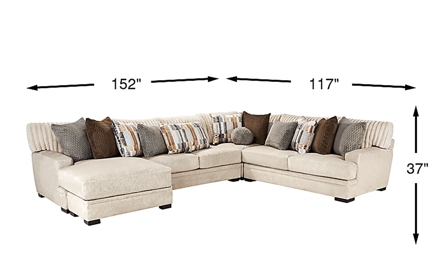 This 3-piece set is configured as a Left Arm Facing (LAF) Chaise, meaning the chaise is on the left side when you are standing and looking at the sectional. With a total width of 152 inches, this is a grand-scale piece designed for large open-concept living areas or spacious suburban homes. Before ordering, we recommend using painter’s tape to map out the 152" x 117" footprint on your floor to ensure there is at least 18–24 inches of clearance for walkways.