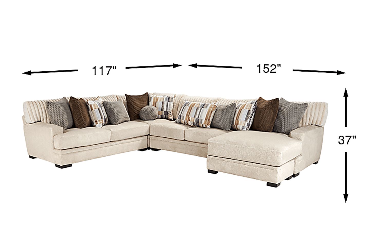 Modern uptown luxury meets traditional downhome comfort with the Hudson Street sectional from Cindy Crawford Home. Highlighted by soft knit upholstery, this transitional piece features wide, low-profile track arms that run from the right arm facing chaise sofa to the left arm facing loveseat. Vertical channeling on the lush back cushions supplies the look with an eye-popping detail while feather blend seat cushions and coordinating accent pillows provide even more plush, padded relaxation. The beige color of the sectional's downy fabric lends the grand silhouette an irresistible final touch. Upholstery:100% Polyester.
