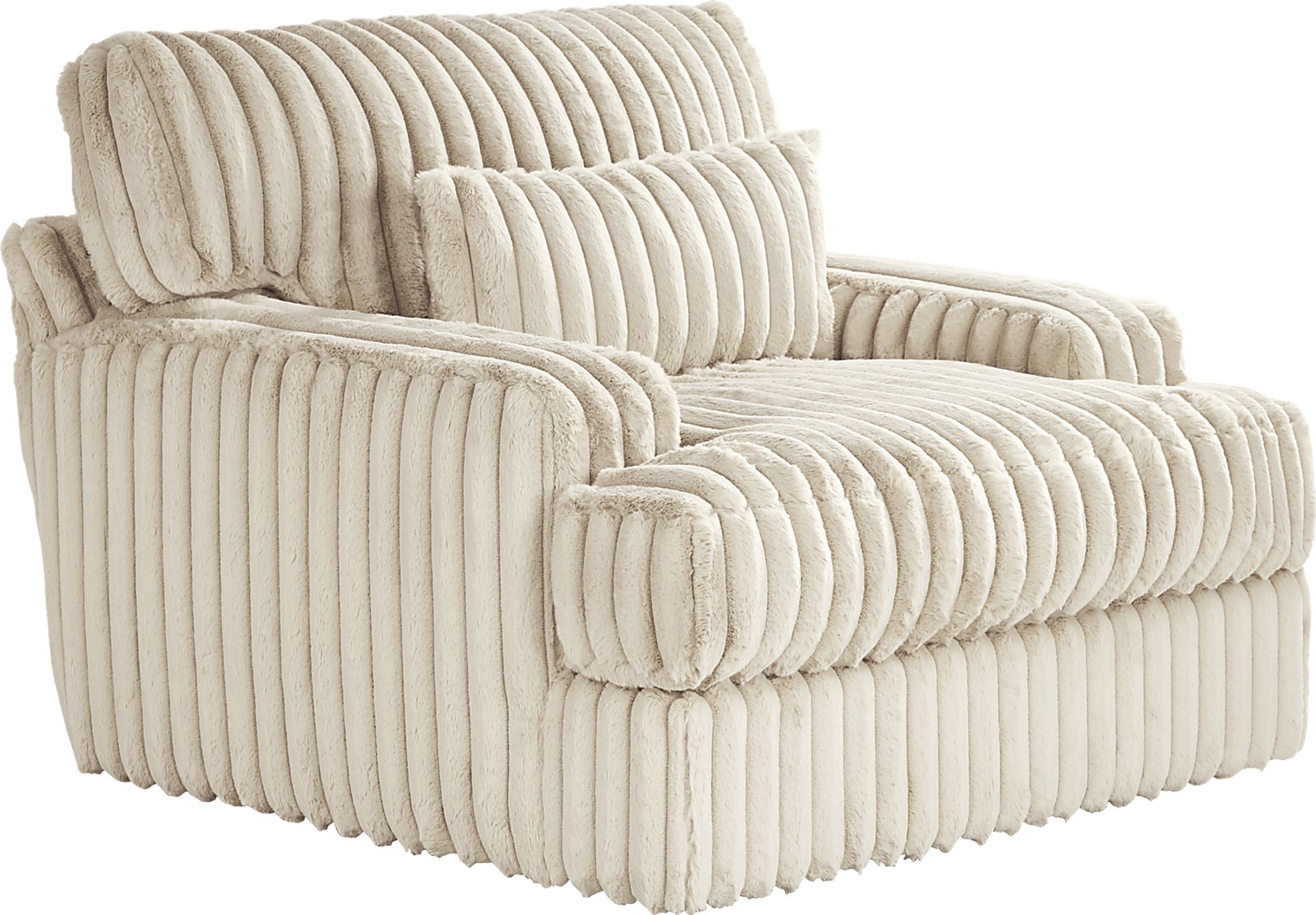 Modern uptown luxury meets traditional downhome comfort with the Hudson Street swivel chair from Cindy Crawford Home. Highlighted by soft knit upholstery, this transitional piece features wide, low-profile track arms that hug each end of the silhouette. Vertical channeling on the lush back cushions supplies the look with an eye-popping detail while feather blend seat cushions provide even more plush, padded relaxation. The beige color of the chair's downy fabric and 360-degree swivel lends the grand silhouette an irresistible final touch. Upholstery: 100% Polyester.