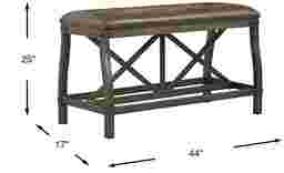 Take dining room seating to new heights with the Hunter Mill counter height bench. This industrial style piece features a comfy padded upholstered seat with a distressed leather look. X shaped metal supports, legs and stretcher have an Industrial Age aesthetic that's right on-trend.