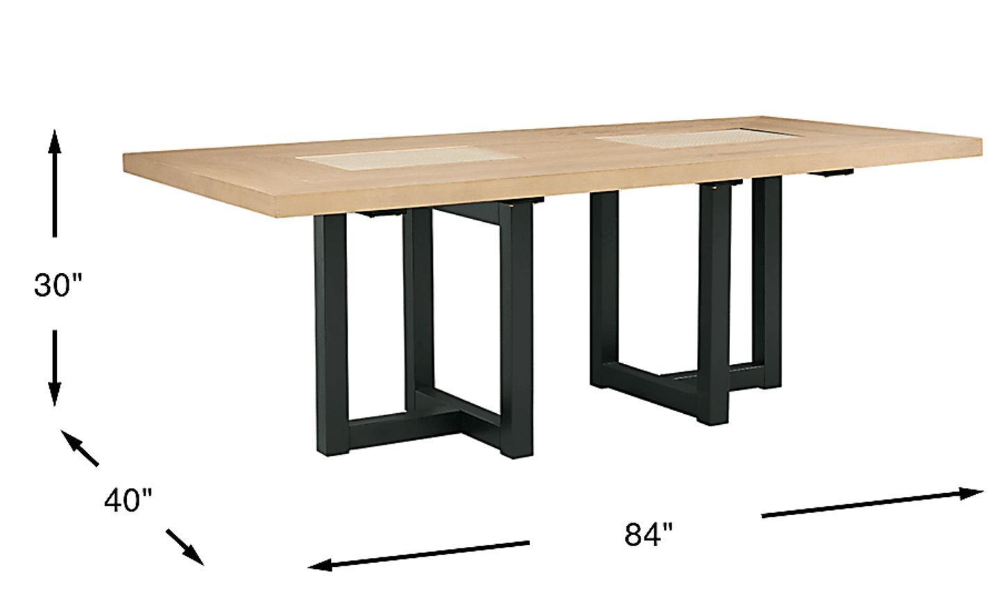 If you're craving an exquisite dining room essential, it's time to feast your eyes on the Hunter Springs table. Brimming with a contemporary appeal, this piece features stunning round glass inlays. The base is in a black color while the rectangular top showcases the natural hue of light oak veneers.