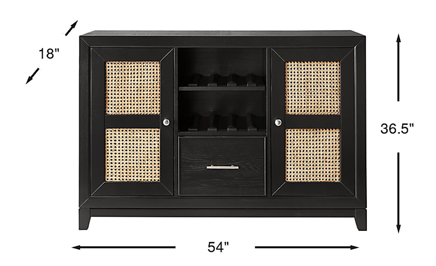If you're craving an exquisite dining room essential, it's time to feast your eyes on the contemporary style of the Hunter Springs server. A pair of doors on the front of the server are adorned with cane details that pop alongside the piece's black finish. Featuring storage galore, you'll find a number of different ways to organize tablescape decorations, glassware and more.