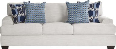 With a refreshingly bright and laid-back style, The Hutchinson living room enhances every moment of quality time spent with family & friends. This contemporary set features relaxed woven upholstery in a light cream color that dazzles. Details like welted seams and tapered block legs bring subtle visual appeal, while the low-profile track arms and reversible seat and back cushions offer functionality as well as style. Tucked away and easily pulled out for overnight guests, the sleeper boasts the exceptional comfort of a Sealy Royale mattress. Complementing and enhancing the airy look, three pairs of accent pillows add a splash of color. Upholstery: 100% Polyester. Cleaning Instructions: Use water based cleaning agents or foam. Tables and lamps not as shown in room image. Small accent pillow not included.