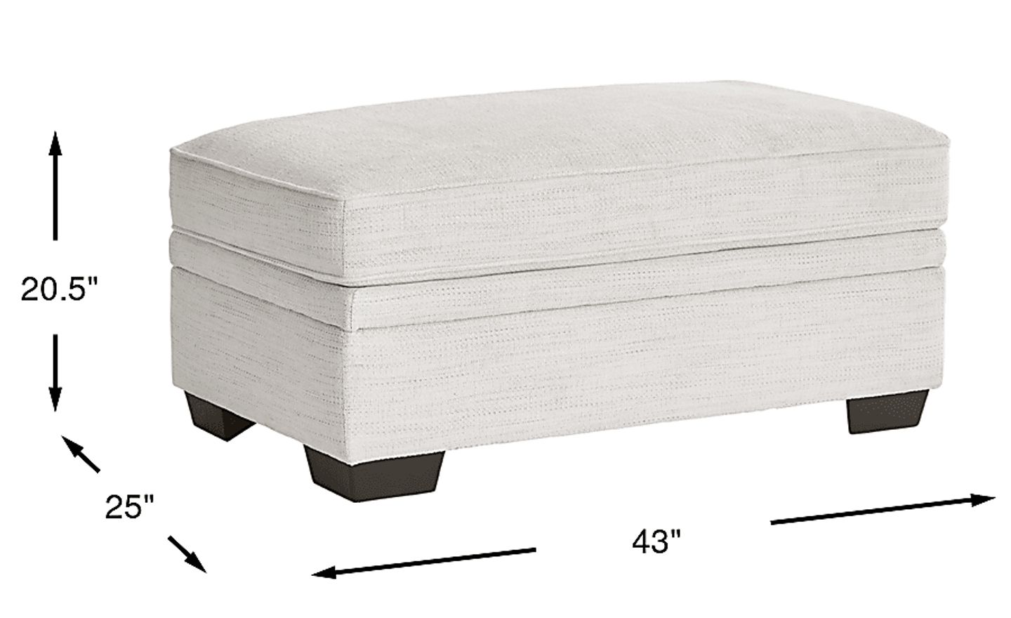 This ottoman utilizes its large 43" x 25" footprint to provide significant internal storage. It is ideally sized to house bulky household items that often clutter a living area, such as full-sized throw blankets, decorative pillows, or children's toys, allowing you to maintain a clean, contemporary look in your home.