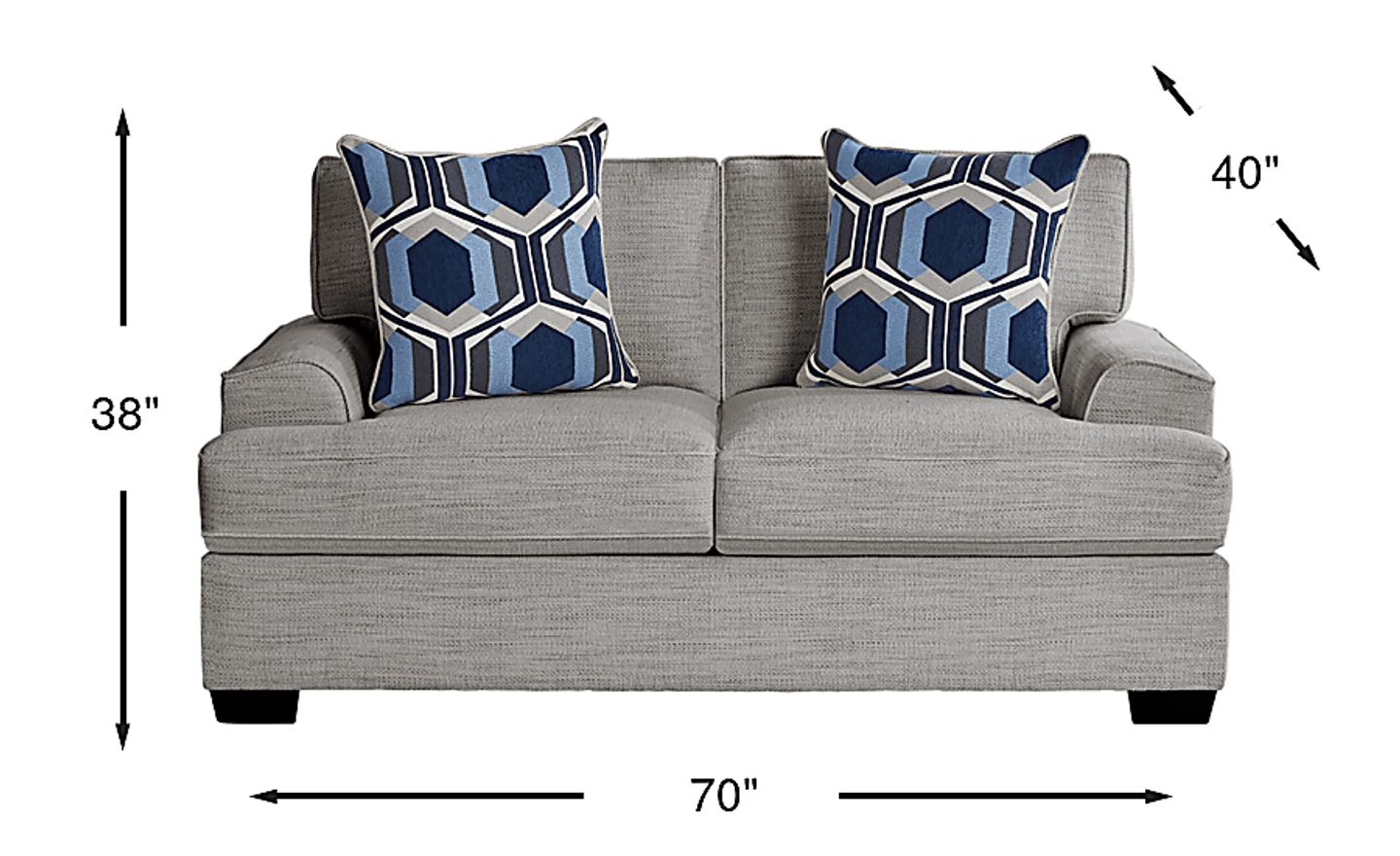 With a refreshingly bright and laid-back style, The Hutchinson loveseat enhances every moment of quality time spent with family & friends. This contemporary seat features relaxed woven upholstery in a foggy gray color. Details like welted seams and tapered block legs bring subtle visual appeal, while the low-profile track arms and reversible seat and back cushions offer functionality as well as style. Complementing and enhancing the airy look, two accent pillows add a splash of color. Upholstery: 100% Polyester.