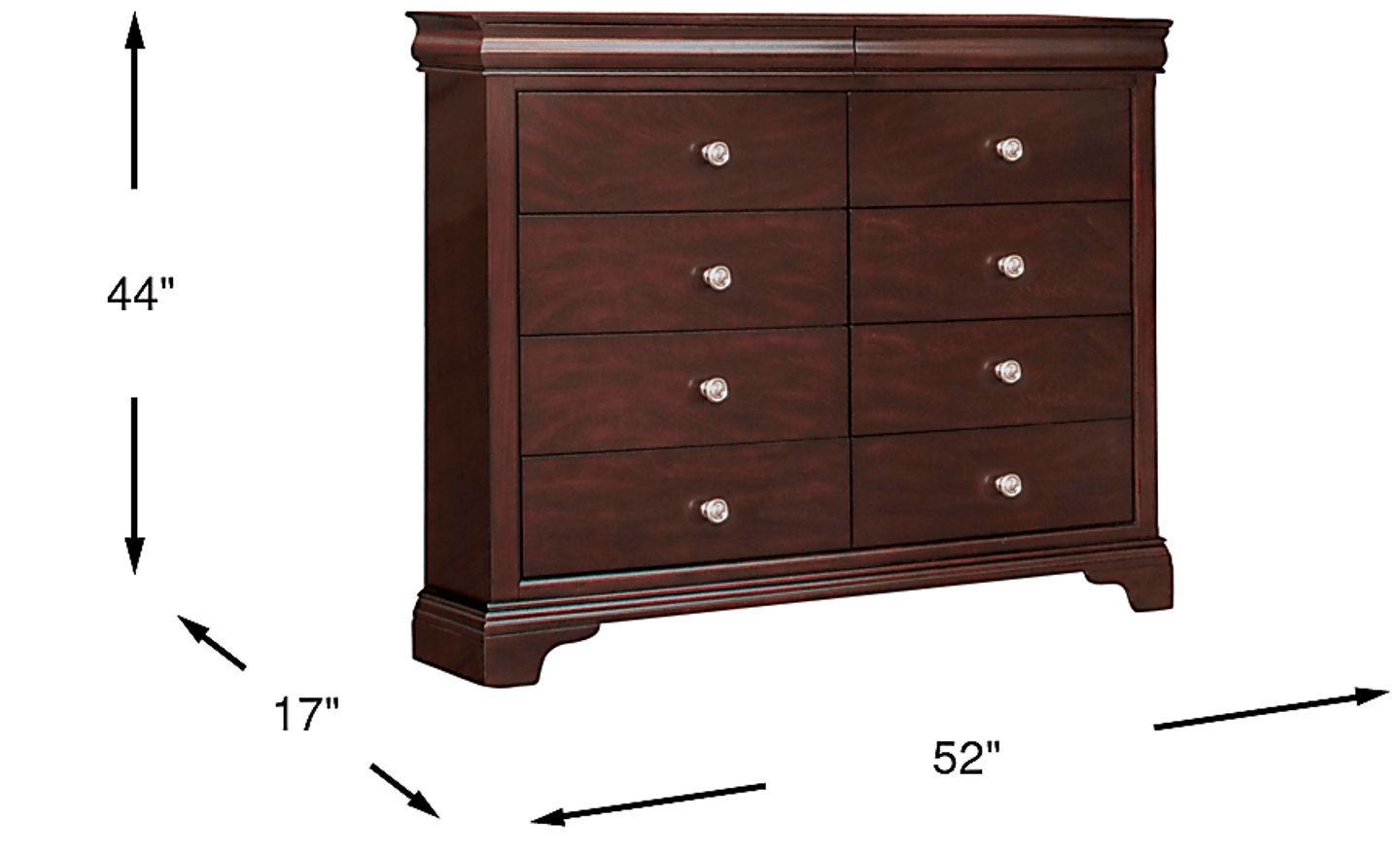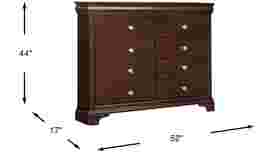 Traditional and timeless, the Hydeville dresser is a must-have bedroom staple. Crafted of birch veneers, this piece is finished in a rich brown color. Beautiful frame moulding and silver-finished metal knobs add distinguished details. For abundant storage, it includes eight drawers to keep clothes, blankets and more neatly stowed away. Two hidden jewelry trays at the top allow you to inconspicuously store valuable items.