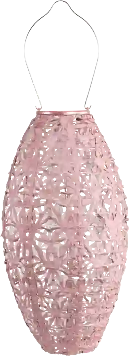 The Hymin Estates outdoor solar lantern collects light all day and turns itself on to cast an enchanting glow by night. Inspired by a field of delicate wildflowers in bloom, this lantern features an intricate floral pattern in a blush pink finish and a beautiful oblong shape. Constructed from durable Tyvek material, this lantern is equipped with one AAA rechargeable battery, solar panel, ultra-bright LED light and stainless steel hardware. Professional installation by an electrician is recommended.
