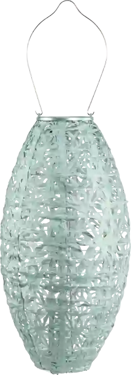 The Hymin Estates outdoor solar lantern collects light all day and turns itself on to cast an enchanting glow by night. Inspired by a field of delicate wildflowers in bloom, this lantern features an intricate floral pattern in a sage green finish and a beautiful oblong shape. Constructed from durable Tyvek material, this lantern is equipped with one AAA rechargeable battery, solar panel, ultra-bright LED light and stainless steel hardware. Professional installation by an electrician is recommended.