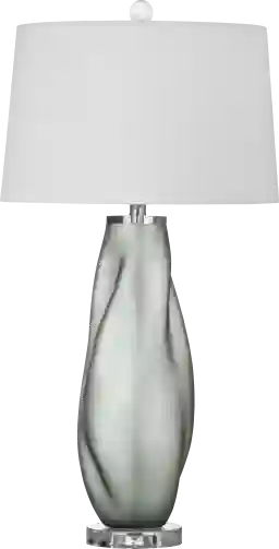 Because each base is crafted of art glass by a skilled artist, the smoke-like gray finish and waved shape are unique to every individual piece. While the overall aesthetic will remain consistent, you should expect slight variations in the hand-crafted details, which ensures your lamp is a one-of-a-kind novelty addition to your home.