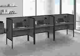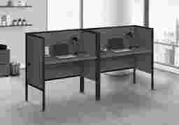 Create a functional workspace with the Icecups dark gray desk, finished in a smooth gray laminate and framed in sturdy silver metal with adjustable legs. The fully finished back allows for versatile placement anywhere in your office space, while the privacy panel offers a bit of seclusion from a bustling work environment. The easy to assemble desk features a cable management hole in the corner to keep cords organized and out of the way, making it a space saver in your office cubicle. The easy to clean top always ensures a pristine work surface. With its fashionable style and contemporary design, this workstation is perfect when you need to zone in with writing, studying, or other work tasks. Customer assembly is required.