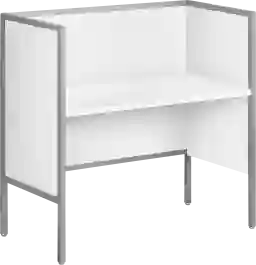 Create a functional workspace with the Icecups white desk, finished in a smooth white laminate and framed in sturdy silver metal with adjustable legs. The fully finished back allows for versatile placement anywhere in your office space, while the privacy panel offers a bit of seclusion from a bustling work environment. The easy to assemble desk features a cable management hole in the corner to keep cords organized and out of the way, making it a space saver in your office cubicle. The easy to clean top always ensures a pristine work surface. With its fashionable style and contemporary design, this workstation is perfect when you need to zone in with writing, studying, or other work tasks. Customer assembly is required.