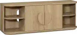 The Icedale brown console has a durable, 1-inch-thick top for a sturdy and reliable display. Accommodates up to a 65-inch TV weighing 70 pounds or less. Hidden storage behind the doors to keep clutter at bay. Four adjustable shelves provide versatile storage options. Finished on all sides for versatile placement in any room. Enclosed back with cord access reduces entangled wires. Customer assembly is required.