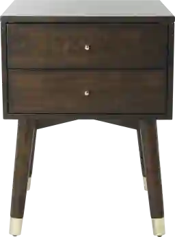 A designer favorite, this retro nightstand was inspired by vintage finds in an Italian gallery. Dressed in a neutral walnut hue, its bright metallic accents create a classic piece that brings instant impact to any space. The Idamor 2-drawer nightstand adds substance to style. Customer assembly is required.
