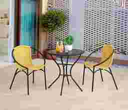 Make a splash on your porch or patio with this 3 piece Idylwood seating set. It's the perfect set for lounging with a friend or neighbor. The pop of color will add a stylish touch to your outdoor space. Made of all-weather resin wicker and powder coated aluminum. Customer assembly required.