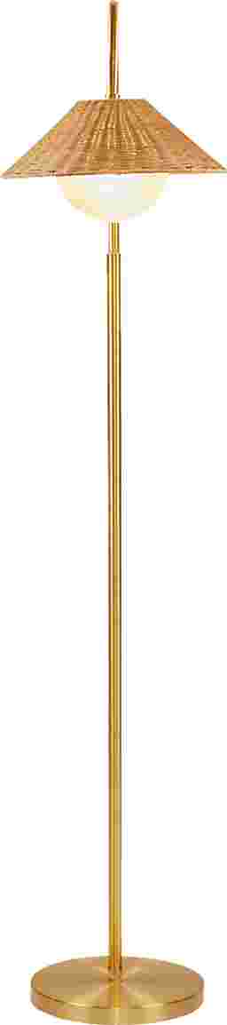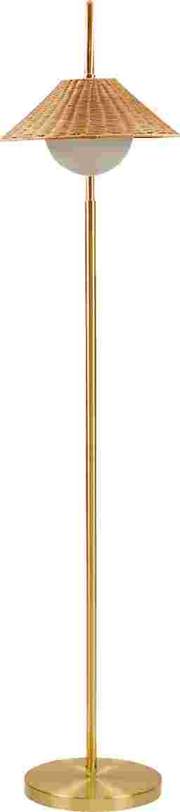Elevate your space with the Ignacio Club Gold Floor Lamp. Made for durable iron in a modern gold finish, this floor lamp features a natural rattan shade paired with a frosted globe for a warm and inviting glow. Perfect for indoor use, this lamp is the ideal choice for creating a cozy and romantic ambiance in any space. Partial assembly may be required.