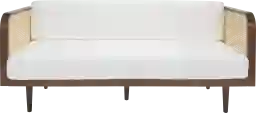 This daybed is a versatile "transitional" piece. The tapered wood-look legs and walnut-finished ash frame are hallmark mid-century modern elements, while the natural French cane and ivory linen cushions tap into a breezy, coastal lifestyle aesthetic. This makes it an ideal anchor piece for a variety of fashionable interior styles.
