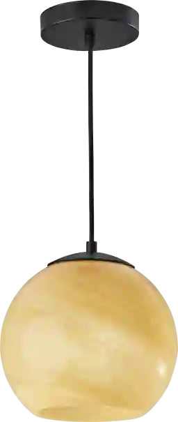 Add warmth and timeless style to your space with the Iliad Post chandelier. A round 5in. diameter base crafted of black metal supports a stunning glass globe with an eye-catching beige swirl pattern that throws warm light from a 60W bulb. Hang it by itself or pair it with several more to create a stunning effect and add illumination to your kitchen, dining area, bedroom, or bathroom. With a 6ft. black fabric-covered cord, the height of the light can be adjusted to suit the needs of any room regardless of the ceiling height. Professional installation by an electrician is recommended.
