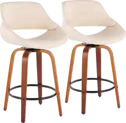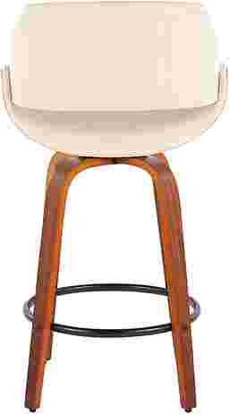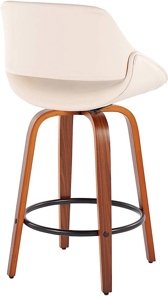 The wide and welcoming seat of the Inaran I counter height stool beckons one to sit and relax. A curved back and contoured upholstered seat is accented by flared walnut wood swivel legs that add to the stylish yet comfortable design. The counter stool is beautifully accented with a black steel footrest. Customer assembly is required.
