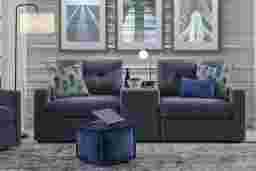 Discover the limitless possibilities of the Drew & Jonathan ModularOne, thoughtfully designed with comfort and flexibility in mind. This customizable seating solution features individual pieces that can be reconfigured to the shape you need. Game days, movie nights, sleepovers, and everyday relaxation are all better when the seating arrangement you want is always right at your fingertips. Each individual piece is upholstered on all sides in our signature fabric, New Horizon. This soft, indigo chenille includes Repreve yarn, made with recycled plastic bottles. The dual seating area has welted track arms, top-stitched seat cushions and button-tufted back cushions for an elegant silhouette. A media console provides hidden storage, a USB charging port, wireless charging, bluetooth-enabled speaker, and doubles as a side table with a sleek acrylic top. A matching pillow provides the perfect final touch. Includes LAF chair, console, and RAF chair. Visit a showroom to learn more about individual components and to work with a sales specialist to customize your own configuration today.