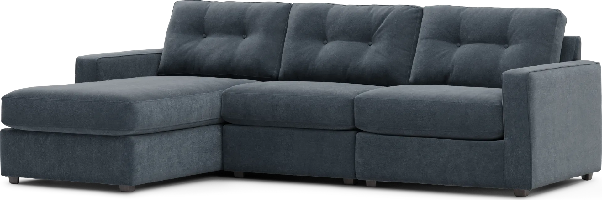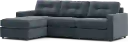 The deep indigo hue is achieved through a 100% polyester weave. Synthetic fibers like polyester are generally more resistant to UV fading than natural fibers like cotton or linen. While we always recommend avoiding prolonged direct exposure to intense sunlight to maintain the vibrancy of any fabric, this sectional's material composition makes it a resilient choice for bright, airy living rooms in sunny or coastal climates.