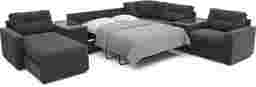 This sectional features a premium Sealy Royale mattress tucked discreetly inside the armless loveseat. Unlike standard "sofa beds" that may use thin padding, this system utilizes a mattress from a globally recognized brand to provide high-quality support and pressure relief. It is designed to be comfortable enough for multi-night stays, effectively transforming your living area into a primary-level guest suite.