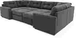 Discover the limitless possibilities of the Drew & Jonathan ModularOne, thoughtfully designed with comfort and flexibility in mind. This customizable seating solution features individual pieces that can be reconfigured to the shape you need. Game days, movie nights, sleepovers, and everyday relaxation are all better when the seating arrangement you want is always right at your fingertips.Each individual piece is upholstered on all sides in our signature fabric, New Horizon. This soft, indigo chenille includes Repreve yarn, made with recycled plastic bottles. The seating area has welted track arms, top-stitched seat cushions and button-tufted back cushions for an elegant silhouette. Two storage ottomans on casters slide into the middle and lock in place to create a cozy area the whole family can enjoy. A matching pillow provides the perfect final touch. Includes LAF chair, two corner wedges, 2 armless chairs, 2 ottomans, & RAF chair. Visit a showroom to learn more about individual components and to work with a sales specialist to customize your own configuration today.