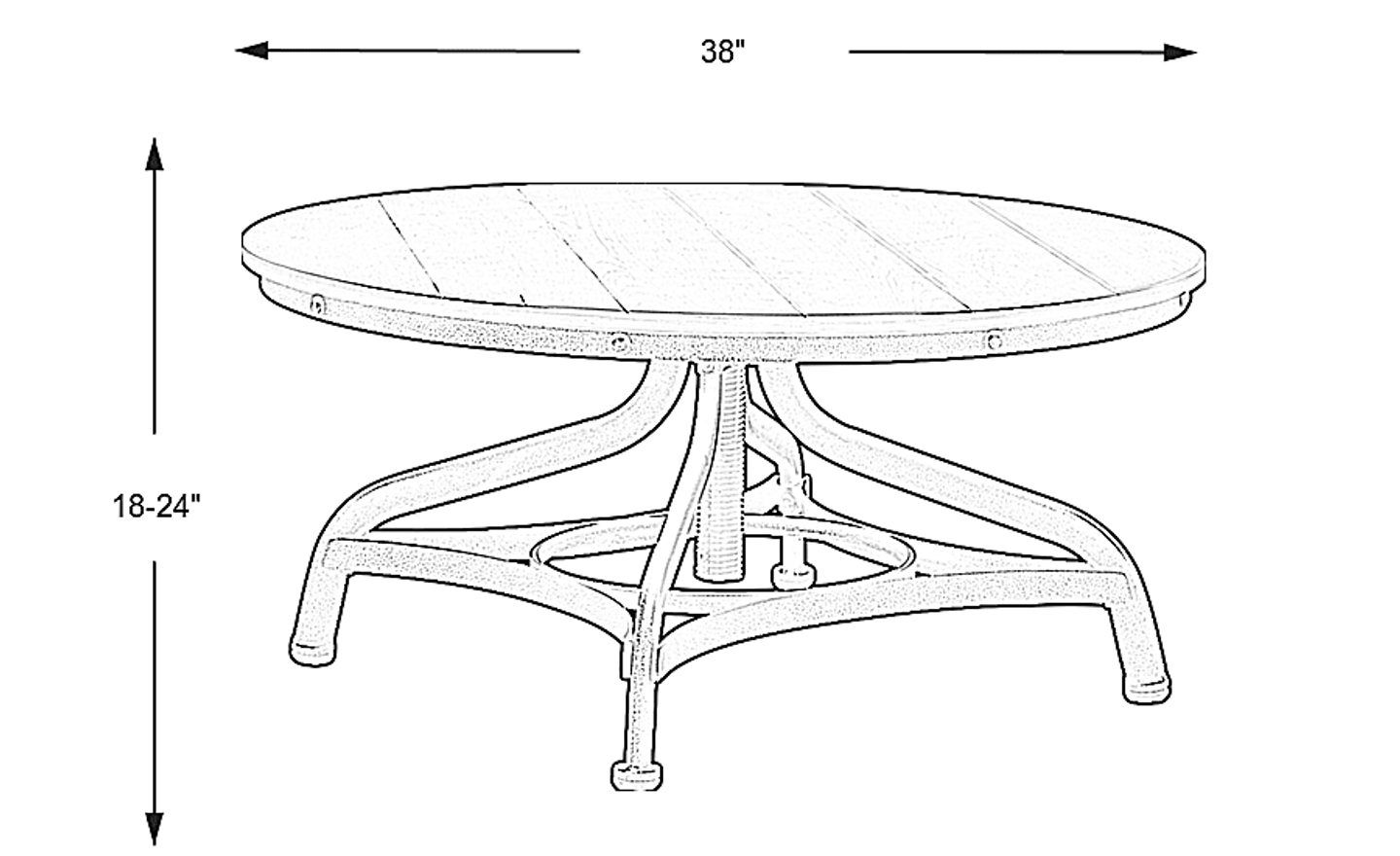 The Industry Place cocktail table adds a delightful rustic look to your living area. Spaciously sized, the round top is crafted of wood solids and birch veneers in a dark cherry finish. The metal base features oversized grommet details, and an adjustable twisting top for height customization. Some customer assembly required.