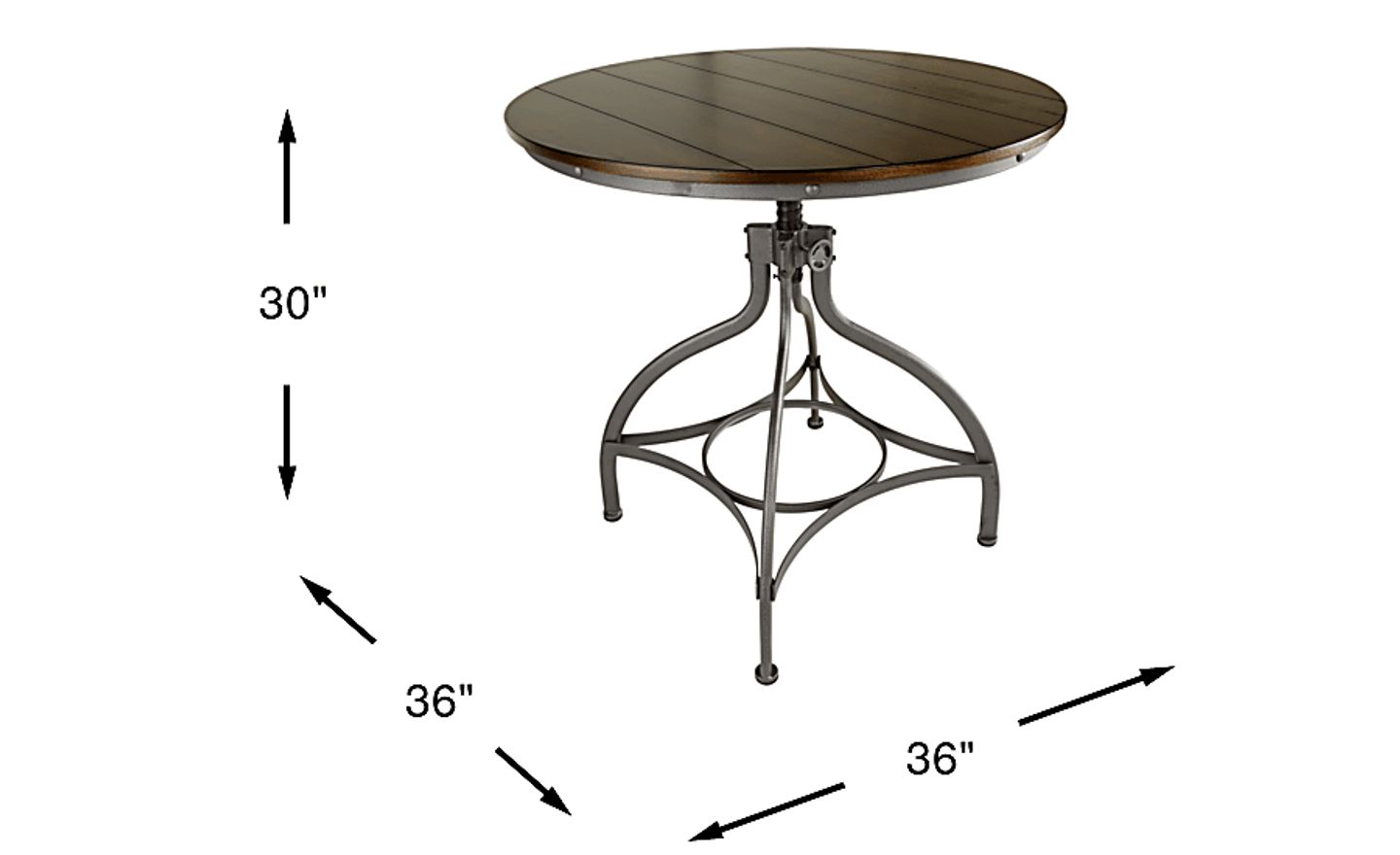 Add versatility and style to your dining room with the adjustable Industry Place dining table. Easily adjusting from a 30 inch tall regular height dining table to a 36 inch tall counter height dining table, this stylish table features a round table top crafted of wood solids and birch veneers in a rich cherry finish. The metal pedestal base features grommet accents, adding to the factory inspired look.