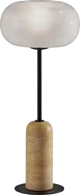 Stability is a key feature of this design. The lamp is anchored by a chunky, solid travertine stone base. Beyond its beautiful organic texture, the natural weight and density of the stone provide a low center of gravity, making it exceptionally sturdy and less likely to tip over in high-traffic areas or homes with active pets.
