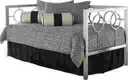 The clean lines and pristine finish of the Inman Park daybed accentuate its ultra-modern style. While it is contemporary in its design, the circle motif gives it a retro air. The square tube frame gives this stylish daybed a sturdy structure, but the open design makes it appear almost delicate. The arms and back meet at the same height to form a perfectly squared profile. Rendered in a champagne finish, this chic daybed's stylish design looks great in most any room. Mattress not included. Customer assembly required.