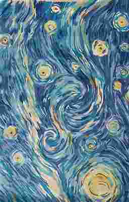 Inspired by Vincent van Gogh's "The Starry Night" painting, the Interstellar Nights rug incorporates an artistic atmosphere to any interior space. Hand-tufted with wool. Vacuum regularly & spot clean stains. Professional cleaning recommended periodically.