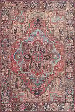 Yes, this rug is an excellent selection for active households. The lack of pile means pet hair, dander, and crumbs are not trapped deep within the fibers, making vacuuming far more effective. Furthermore, the intricate traditional pattern incorporates a blend of red, beige, blue, and green tones, which helps to naturally mask minor spills and daily wear between cleanings.
