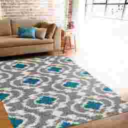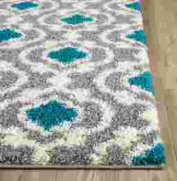 The power-loomed cozy Irenee shag rug offers luxurious comfort and easy-to-design styling in any interior space. This rug features a unique design in shades of turquoise, gray, and white. Machine-made with 100% polypropylene, the texture of this plush rug adds depth to its colors, and the durable power-loomed construction is built to last, standing up to everyday foot traffic with ease. A rug pad is recommended to extend the life of the rug and prevent shifting (not included). For maintenance, vacuum regularly and spot clean; do not dry clean.