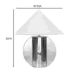 The Irgo Silver Lamp is a bold piece of modern art disguised as lighting-its polished chrome base sculpted into a striking fusion of cylinder and circle, reflecting the room around it like liquid silver captured in motion. The crisp white cone shade balances the shine with serene softness, giving the entire piece a gallery-ready elegance that feels both futuristic and timeless. Every angle, every reflection, every clean geometric line creates a sense of quiet luxury and architectural beauty, transforming even the simplest corner into a curated moment. Let its sculptural glow and modern sophistication be the reason you bring it into your home. Partial assembly may be required.