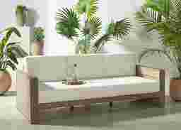Adorn your outdoor space with the stylish Irocana eucalyptus patio sofa. Boasting a stunning blend of natural wood tones and a soothing beige fabric, this sofa elegantly elevates any patio or outdoor setting. Expertly crafted from robust Outdoor eucalyptus wood, this outdoor sofa promises superb durability and an unwavering stability. Store furniture indoors or cover well when not in use. Remove wooden furniture from standing water. Customer assembly required.