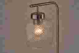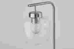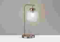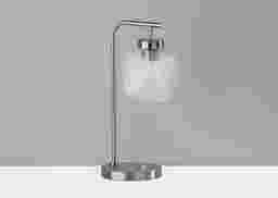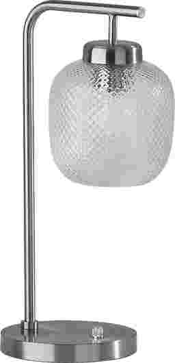 Add an eye-catching table lamp to your bedroom or living space with the Iroquois Loop table lamp. Warm light shining through a clear textured glass shade creates a look that is just as beautiful as it is functional. With a brushed steel lamp body and base, this lamp is a high end solution to provide lighting and modern dcor to any space. Partial assembly may be required.