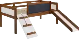 These design elements are crafted to foster imaginative play and cognitive development within the safety of a child's bedroom. The chalkboard headboard serves as a creative outlet for drawing and practice, while the slide provides a safe, active way to exit the bed. Additionally, the removable tent features windows and a tie-closure door, creating an enchanting "hideaway" that encourages independent play—a hallmark of contemporary, child-centric furniture design.
