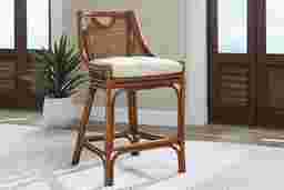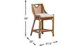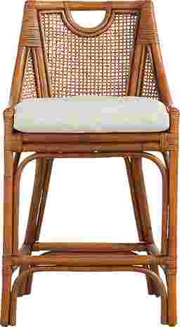 The breezy, relaxed charm of a serene beachside resort comes naturally with the Isla Bay collection, creating a space that feels light, welcoming, and effortlessly pulled together. Classic coastal in style, this counter height stool is crafted from 100% natural rattan in a warm brown finish for rich texture and organic character. The rattan panel adds depth while the straight long legs keep the look airy and light. An upholstered seat in crisp white offers an inviting place to sit comfortably.