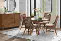 This table is a cornerstone piece for "Classic Coastal" design. The use of natural rattan in a warm brown finish introduces organic texture and a relaxed, resort-like feel to the home. Whether you are furnishing a beachfront cottage or simply want to bring a breezy, tropical aesthetic to a suburban dining room, the woven details and curved legs evoke a sense of natural craftsmanship that anchors a coastal-themed space perfectly.