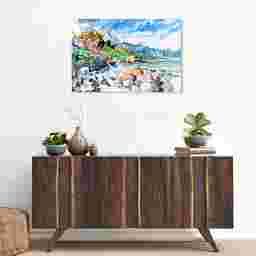 Add a refreshing touch to your home with the Island Seascape. This charming landscape is giclee printed on canvas and finished with a hand-brushed varnish. Designed by exclusive artists and award-winning designers, each piece is exquisitely crafted using museum-quality materials for the perfect finishing touch to any space. Customer assembly is required.